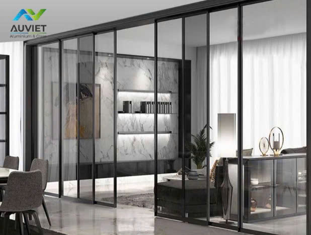 Sử dụng kính cường lực: Kính cường lực được sử dụng phổ biến trong cửa nhôm Slim, đảm bảo an toàn và độ bền cao