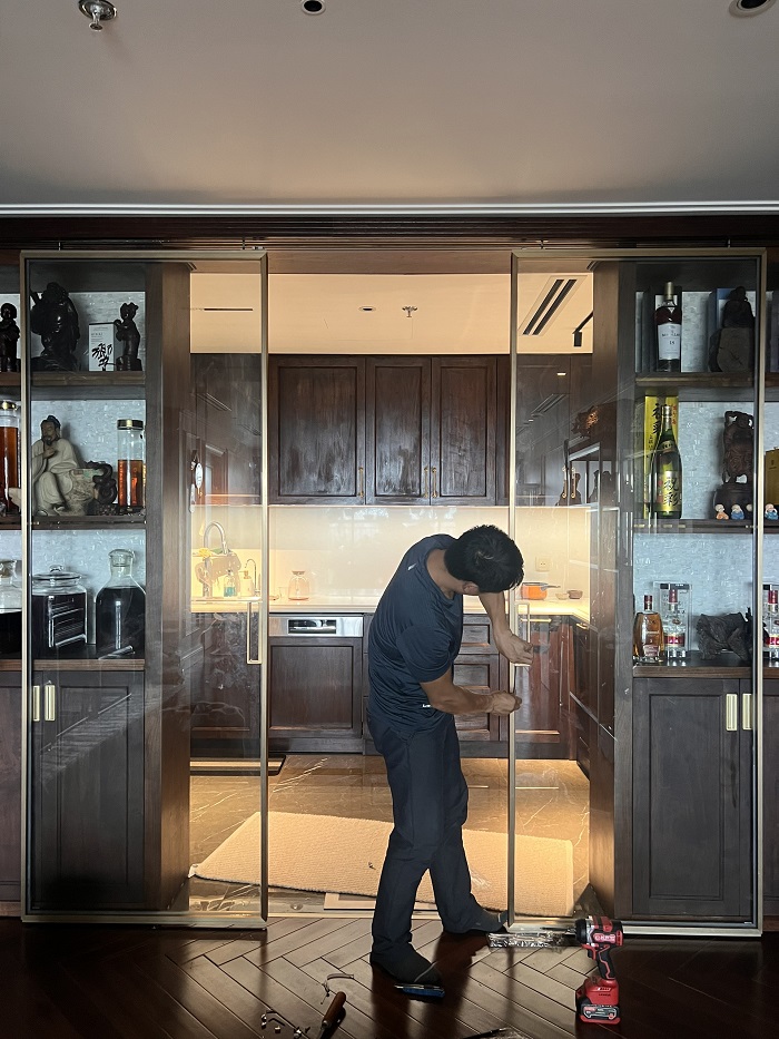 Đội ngũ kỹ thuật chuyên nghiệp, tay nghề cao cùng hệ thống phụ kiện chính hãng giúp cửa vận hành êm ái và đảm bảo tuổi thọ lâu dài.